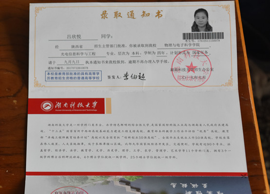 呂欣悅同學(xué)錄取通知書