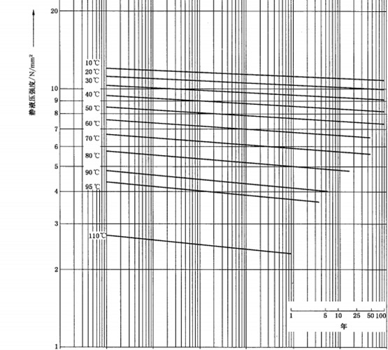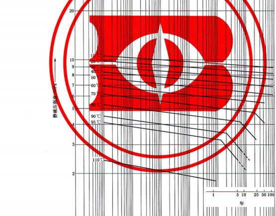 從上圖PE-RT II型管材曲線圖來看,PE-RT II型管耐溫耐壓適用于高溫?zé)崴艿老到y(tǒng),正常使用溫度在20-95°c。
