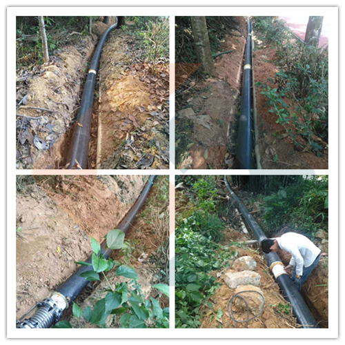 5、人工開挖管槽時(shí),要求溝槽底部平整、密實(shí),無尖銳物體。溝底可以有起伏,但必須平滑地支撐管材,若有超挖時(shí),回填夯實(shí)。